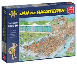Puzzle-urile de la Jan van Haasteren, cunoscute pentru ilustrațiile lor amuzante și detaliate, oferă o experiență de asamblare de neuitat. În timp ce asamblați, veți descoperi fiecare detaliu amuzant, cum ar fi aripioara de rechin și mâinile nepotrivite. Căutați, de asemenea, detaliile iconice, cum ar fi portretul lui Haasteren sau proteza dentară.