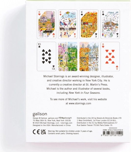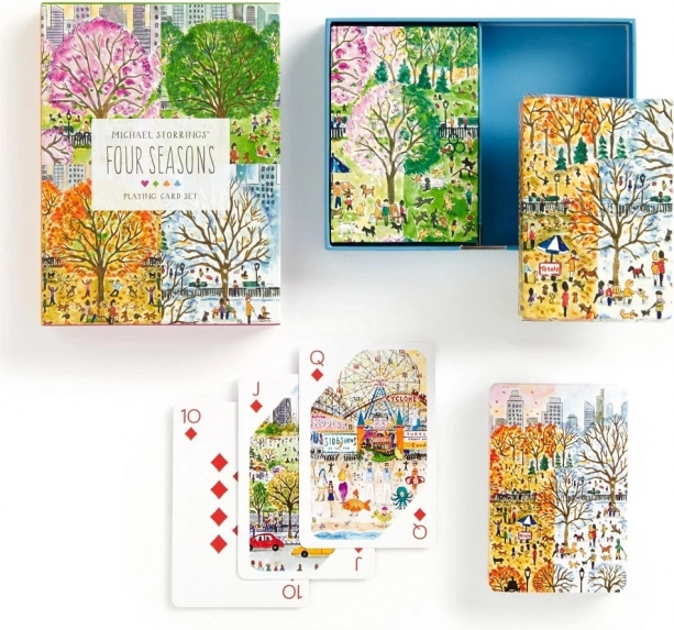 Acest set de design aduce o atmosferă unică serilor tale de joc. Fiecare pachet este decorat cu ilustrații originale ale scenelor urbane și peisajelor inspirate de primăvară, vară, toamnă și iarnă. Două pachete complete sunt așezate într-o cutie tip sertar robustă, cu închidere magnetică, pentru depozitare ușoară și sigură.