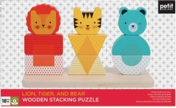 Scufundați-vă în lumea nesfârșită a imaginației cu Petit Collage puzzle din lemn! Acest puzzle unic, conținând trei animăluțe carismatice – leul, tigrul și ursul – este proiectat pentru dezvoltarea copilului dumneavoastră într-un mediu distractiv și educativ.