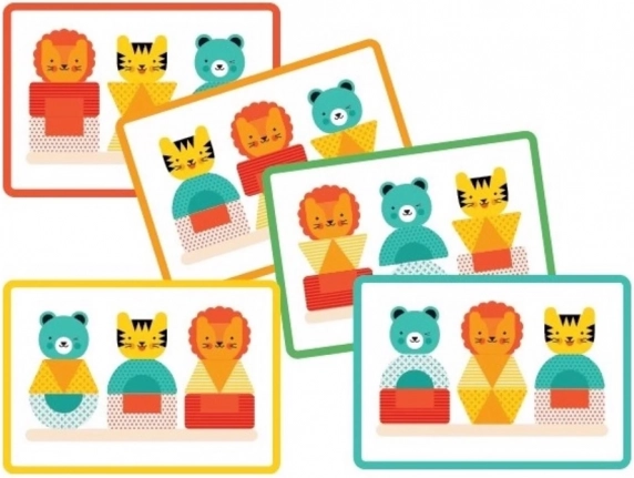 Fiecare animăluț este compus din forme geometrice și oferă copiilor posibilitatea de a construi după ghid sau după propria imaginație: