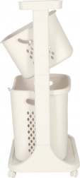 Coșurile pot fi detașate și folosite separat – coșul mai mare are în plus un mâner practic pentru transport. Construcția stabilă din plastic, cu roți mobile, vă permite să mutați întregul stativ acolo unde aveți nevoie.