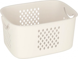 Soluție elegantă și funcțională pentru organizarea zilnică a locuinței. Două coșuri spațioase permit sortarea comodă a rufelor sau depozitarea jucăriilor și mărunțișurilor. Modelul perforat susține circulația aerului, astfel încât conținutul rămâne proaspăt mai mult timp.