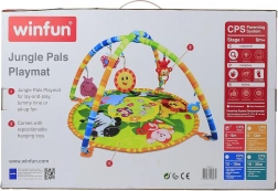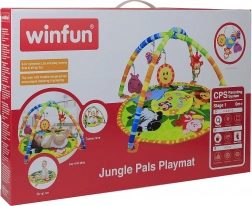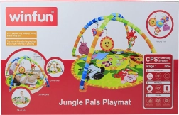 Acest covoraș de joacă moale și sigur, cu motive de junglă, este un partener grozav pe tot parcursul primului an de viață și chiar mai mult. Bebelușul va fi atras de culorile contrastante și de jucăriile suspendate de pe arcadă, pe care le poate observa treptat, apuca și scutura. Astfel își întărește natural brațele, spatele și gâtul, îmbunătățește coordonarea mână–ochi și își dezvoltă abilitățile cognitive.