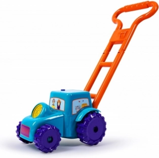 Pornește distracția în grădină sau în casă cu tractorul cu bule FRU BLU! Această jucărie colorată creează o mulțime de bule curcubeu în timp ce este împinsă, îi motivează pe copii la mișcare și, datorită luminii LED integrate, oferă un spectacol și mai atrăgător. Datorită flaconului închis cu lichid special, joaca este fără vărsare și fără murdărie, ideală pentru copiii de la 3 ani.