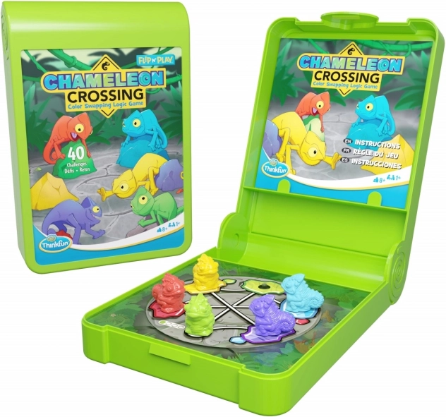 Porniți într-o aventură cu jocul ThinkFun Chameleon Crossing, unde sarcina dvs. este să ghidați cei cinci cameleoni pierduți la piatra lor de origine potrivită. Jocul este conceput pentru a fi amuzant pentru întreaga familie și în același timp să învețe copiii abilități logice importante.