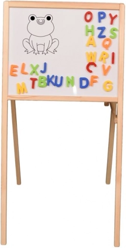 Cadrul din lemn rezistent asigură stabilitate și durabilitate, iar tabla este pliabilă, astfel încât după joacă o puteți depozita ușor. În pachet găsiți tot ce aveți nevoie pentru utilizare imediată: 26 de litere magnetice, 3 bucăți de cretă, un burete și un marker pentru tablă.
