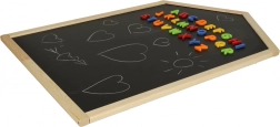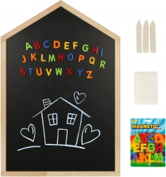 Această tablă magnetică cu cretă în formă de căsuță aduce copiilor distracție și învățare într‑un singur produs. Datorită combinației dintre suprafața pentru cretă și suprafața magnetică, micii artiști pot desena, scrie primele litere și cifre sau pot alcătui cuvinte din litere magnetice colorate. Tabla este pregătită pentru agățare pe perete și va deveni o decorațiune originală pentru camera copilului.