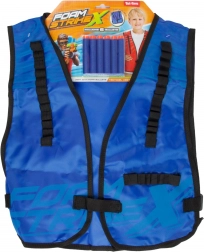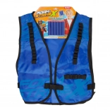 Dimensiunile practice de 38 × 44 cm se potrivesc copiilor de la 3 ani. Bretelele ajustabile și închiderea frontală asigură o prindere stabilă și sigură peste tricou sau hanorac. Pachetul include 6 bucăți de gloanțe din spumă de rezervă, astfel că joaca poate începe imediat.