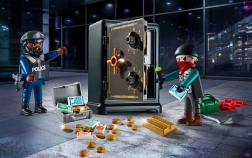Setul de pornire distractiv PLAYMOBIL City Action aduce acțiune palpitantă – spargerea seifului. Hoțul încearcă să deschidă un seif bine securizat, dar polțistul vigilent este pe urmele lui. Include un seif funcțional cu discuri rotative și accesorii bogate pentru un joc realist.