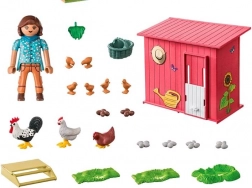 - Figurină PLAYMOBIL, coteț, 2 găini, cocoș, 6 puișori, autocolante și accesorii