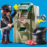 - 2 figurine (polițist, hoț), motocicletă de poliție, bancomat, rangă, sac, bancnote și accesorii