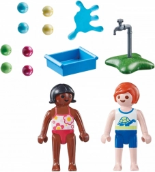 Porniți distracția de vară cu Playmobil Special Plus – Copii cu baloane cu apă. Copiii umplu baloanele cu apă la robinet și pot începe un duel stropitor răcoritor. Setul compact este ideal ca mic cadou, recompensă sau completare pentru alte lumi PLAYMOBIL.