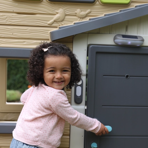 Instalarea este rapidă și simplă, iar soneria este compatibilă cu căsuțele de grădină SMOBY actuale: Jolie, Lovely, Nature, Pretty, Neo Jura Lodge, Friends House, Friends House Evo, 4 Seasons Playhouse, Sweety Corner Playhouse, Garden House Playhouse, Chef House Playhouse, căsuța pe piloni. Este suficient să adăugați 2× AAA/LR03 baterii (nu sunt incluse) și distracția poate începe.