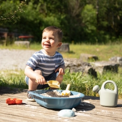 Durabilitate de ani de zile: Găleata de nisip este protejată împotriva radiațiilor UV, păstrând-o ca nouă timp de mulți ani de distracție. Fabricată în Franța, este destinată copiilor de la 18 luni.