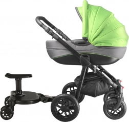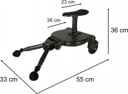 Bucurați-vă de plimbări confortabile cu doi copii datorită platformei universale cu scaun. Copilul mai mare poate sta așezat sau în picioare după nevoie, în timp ce cel mic se odihnește în cărucior. Construcția durabilă și rotițele stabile asigură o deplasare lină și sigură.