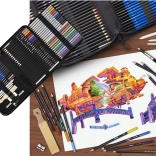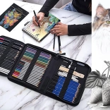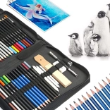 Setul pentru schițare și desen este alegerea ideală pentru toți iubitorii de artă. Acest pachet complex oferă o selecție bogată de instrumente, incluzând creioane cu durități diferite, pasteluri, cărbuni și multe altele. Fiecare element este aranjat cu grijă într-o husă practică pentru transport, care vă permite să aveți toate instrumentele la un loc, oriunde v-ați afla.