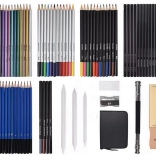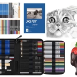 Setul conține creioane cu durități diferite, pasteluri, cărbuni, blendere, ascuțitoare și un caiet de schițe, adică tot ce aveți nevoie pentru o creație artistică completă.