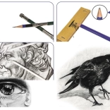 Cu 7 creioane de tip B, care oferă posibilități excelente pentru realizarea fundalurilor, și 4 creioane de tip H pentru desene tehnice precise, acest set acoperă toate nevoile pentru diferite tipuri de desen. Nu lipsesc nici cărbunii în variante moale, medie și tare, care oferă o experiență tradițională combinată cu posibilități moderne.