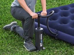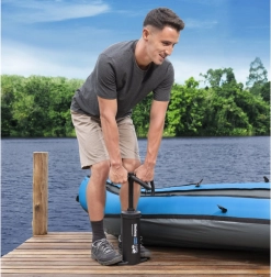 Această pompa manuală cu dublu sens permite umflarea rapidă deoarece pompează aerul atât la mișcarea în sus cât și în jos. Este o alegere excelentă pentru camping și alte activități în aer liber datorită dimensiunii sale compacte.