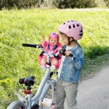 Copiii pot simula o plimbare cu bicicleta împreună cu păpușa lor, contribuind la dezvoltarea imaginației și abilităților motorii.