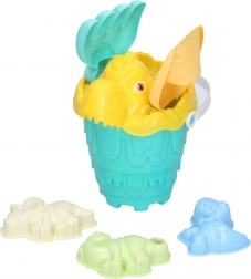 Distractivul set pentru nisip Dino pentru micii constructori conține tot ce este necesar pentru joaca pe plajă sau în parc. Include un găletuș, un capac cu sită, 3 forme de dinozauri, greblă și lopățică. Ideal pentru dezvoltarea creativității, motricității fine și a jocului în comun.
