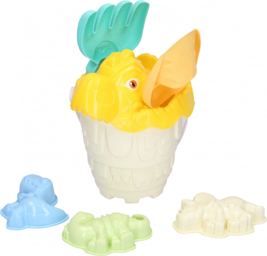 - Găletuș, capac cu sită, 3× formă de dinozaur, greblă, lopățică