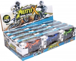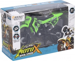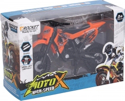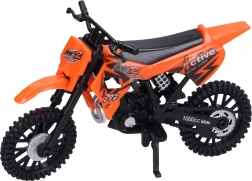 Motocicletă de teren compactă, cu dimensiunea de 12 cm, îi va încânta pe micii piloți cu aspectul realist și manevrarea ușoară. Are roți cu rulare liberă, este disponibilă în 3 variante de culoare (portocaliu, verde, albastru) și este ideală pentru joacă acasă și în călătorii.