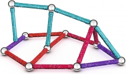 Setul sclipitor Geomag Glitter oferă posibilități infinite de construcție datorită magneților puternici și culorilor vii cu efect de sclipici. Copiii exersează într-un mod jucăuș fizica, geometria și percepția spațială, în timp ce creează modele originale de la forme simple până la structuri mai complexe. Materialul din plastic 100% reciclat este durabil și prietenos cu mediul.