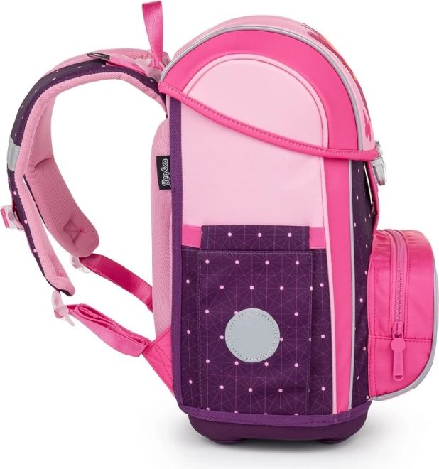 Ghiozdanul școlar Oxybag Premium este conceput pentru confortul și siguranța copiilor. Cu o greutate de doar 1100 g, elemente reflectorizante și design ergonomic, oferă suport optim. Spatele modelat anatomic și căptușeala din material respirabil asigură o purtare confortabilă, în timp ce forma recomandată de fizioterapeuți ajută la menținerea unei dezvoltări sănătoase a spatelui copilului.