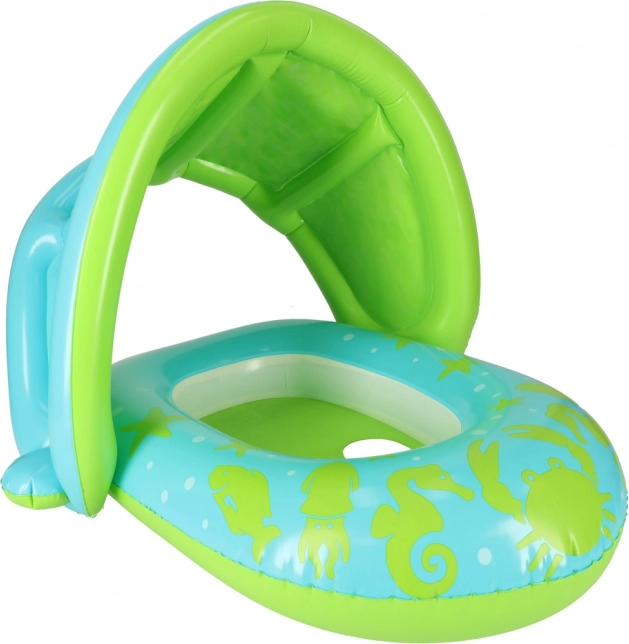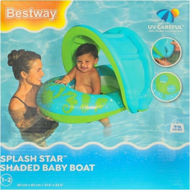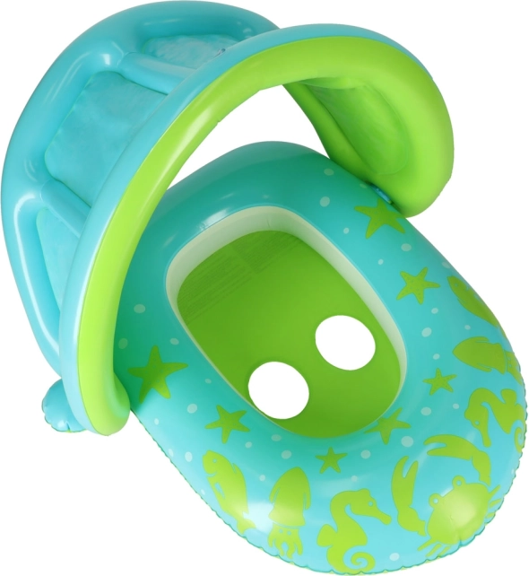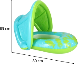 Bucurați-vă de joaca estivală în apă cu siguranță și liniște. Scăunelul de înot pentru copii cu baldachin gonflabil detașabil protejează pielea sensibilă a copilului de razele soarelui și oferă umbră plăcută atât în piscină, cât și la mare.
