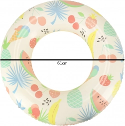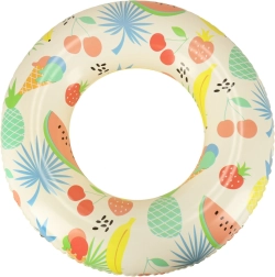 Imprimeul jucăuș cu banane, pepeni și alte motive aduce distracție la bălăceală, iar copiii folosesc colacul cu plăcere.