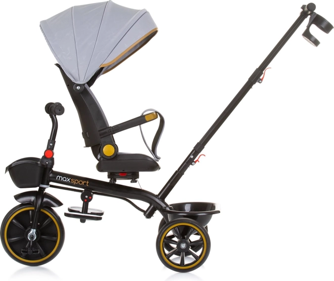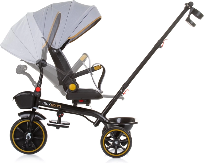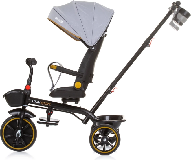 Tricicleta Chipolino Max Sport 2în1 este proiectată pentru confort și siguranță maxime. Datorită scaunului rotativ la 360°, poți plimba copilul cu fața sau cu spatele la direcția de mers, iar când este pregătit, trece ușor la deplasarea independentă cu pedale. Scaunul lat, moale, cu 2 poziții de înclinare, centurile de siguranță și bara detașabilă asigură confort și stabilitate.