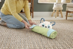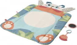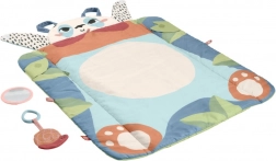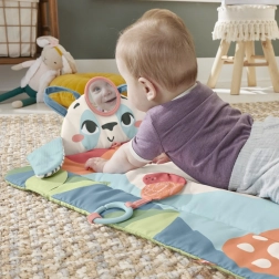 Jucăria foșnăitoare și oglinda sigură pot fi prinse pe panou sau de buclele de pe salteluță. Astfel, bebelușul are de fiecare dată o joacă nouă și stimulativă.