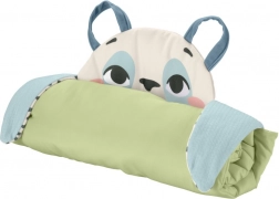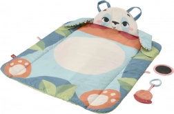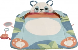 Descoperă salteluța moale și versatilă pentru bebeluși, care susține joaca pe spate, tummy time și călătoriile. Salteluța ecologică cu motiv panda oferă stimulare senzorială bogată datorită oglinzii și jucăriei foșnăitoare detașabile, se rulează ușor și se fixează cu bretele, iar după îndepărtarea jucăriilor poate fi spălată la mașină.
