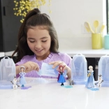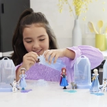 Această colecție de păpuși mici cu surprize oferă o experiență inovatoare de despachetare datorită Squishy Ice™ – un amestec gelatinos albastru-gheață. Copiii, folosind lopățica inclusă, vor săpa în recipientul cu Squishy Ice™ și vor descoperi comori în interior: o păpușă mică Anna sau Elsa, un personaj prieten și 4 elemente de joacă.