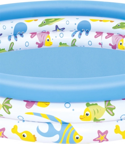 Oferiți-le celor mici bucuria jocului cu piscina gonflabilă Lumea Mării, care prin paleta sa colorată și motivele cu creaturi marine va captiva orice copil. Este realizată din vinil rezistent și testat, garantând o durată lungă de viață.