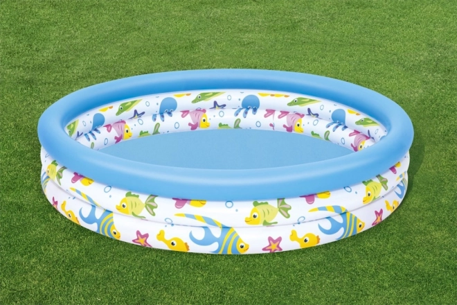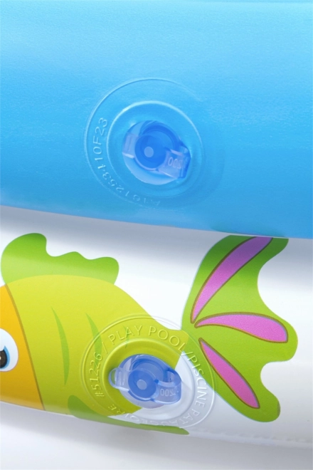Piscina cu motive ale creaturilor marine aduce distracție și încântare vizuală pentru cei mai mici.