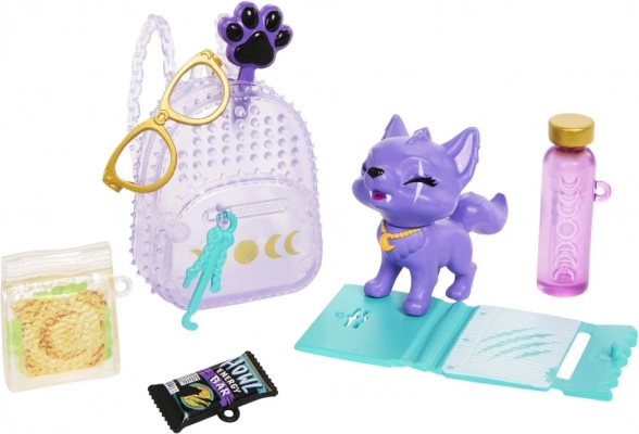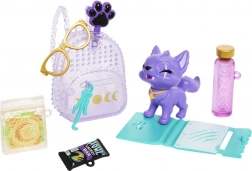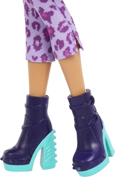 Ținuta „cu gheară” include o jachetă mov cu blăniță, pantaloni cu imprimeu leopard, completate de un colier, curea și pantofi cu platformă. Setul bogat de accesorii – rucsac, ochelari, sticlă pentru băut, gustare și baton, organizator și perie pentru animăluț – susține joaca imaginativă și expunerea pe raft.