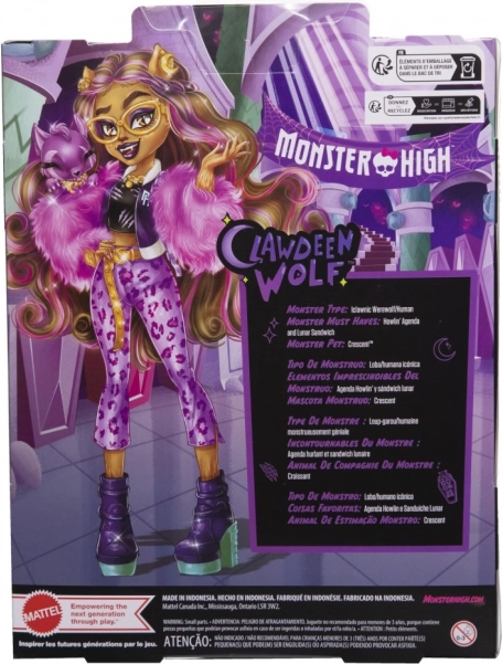 Descoperă-o pe Clawdeen Wolf într-o stilizare îndrăzneață mov, care îi confirmă simțul rafinat pentru modă. Datorită articulațiilor mobile, o poți poziționa ușor în diverse ipostaze și îți poți crea propriile povești monstruos de distractive. Este inclus și animăluțul ei loial, Crescent, pregătit pentru aventuri fără sfârșit.