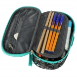 - Organizare clară: suporturi elastice și clapetă interioară pentru creioane și pixuri