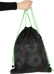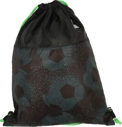 Acest sac ușor și rezistent pentru încălțăminte ST. RIGHT Football este o alegere excelentă pentru școală, ore de sport și antrenamente. Designul stilat cu tematică de fotbal, pe fundal negru cu accente verzi, atrage privirea, iar execuția de calitate asigură durabilitate îndelungată.