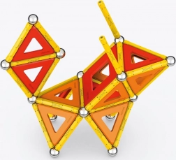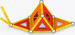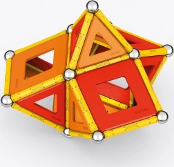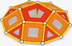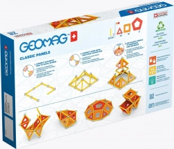 Descoperă puterea geometriei cu Geomag Clasic Panouri. Acest set magnetic conține 28 de bețe magnetice galbene, 20 de bile din oțel, 16 umpluturi triunghiulare, 2 umpluturi roșii în formă de pentagon și 12 umpluturi pătrate. Include și o cutie de plastic practică pentru bile și bețe.