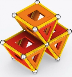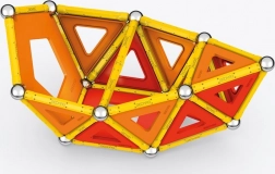 Geomag îți permite să creezi nenumărate construcții din panouri colorate și bețe magnetice.