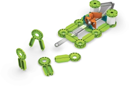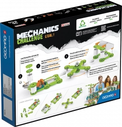 Setul GEOMAG Mechanics Challenge combină bețișoare magnetice, bile metalice și elemente mecanice care extind posibilitățile fiecărei construcții. Datorită atracției și respingerii magneților creezi ușor mecanisme în mișcare și reacții în lanț. Asamblează un tun magnetic, țintește și trage bila în poartă – o provocare grozavă pentru un jucător sau doi.