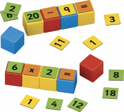 Clipurile cu numere și simboluri susțin primele exerciții de adunare, scădere și comparare. Codarea color ajută copiii să se orienteze mai rapid.