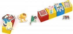 31 de cleme colorate cu personaje și scene din Cei trei purceluși stimulează imaginația, dezvoltarea limbajului și povestirea independentă.