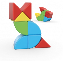 Setul de construcție magnetică conține 16 semicupe și 8 sectoare în patru culori. Combinați-le cu celelalte forme din gama Magicube. Potrivit de la 1 an.