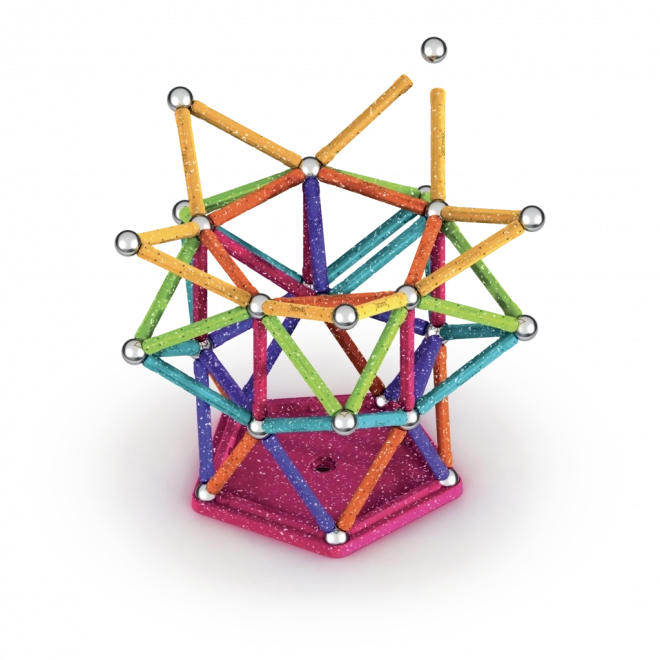 Cu setul Geomag Glitter puteți construi cu ușurință de la forme simple până la structuri 3D elaborate. Bețișoarele colorate cu efect sclipitor, combinate cu bilele din oțel solide și cu bazele incluse, permit modele stabile și impresionante, care îi inspiră pe copii și adulți să experimenteze.