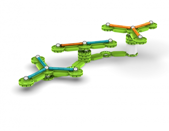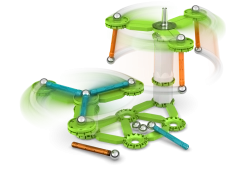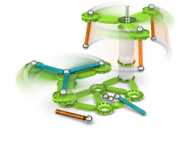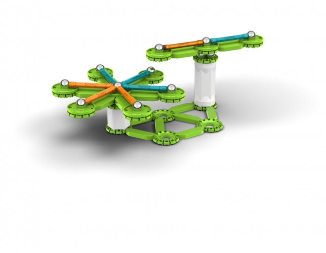Dezvoltă gândirea logică, răbdarea și creativitatea și explică ușor principiile rotației, inerției și magnetismului. Cu 96 de piese poți crea modele variate și poți experimenta cu viteza și stabilitatea rotației.