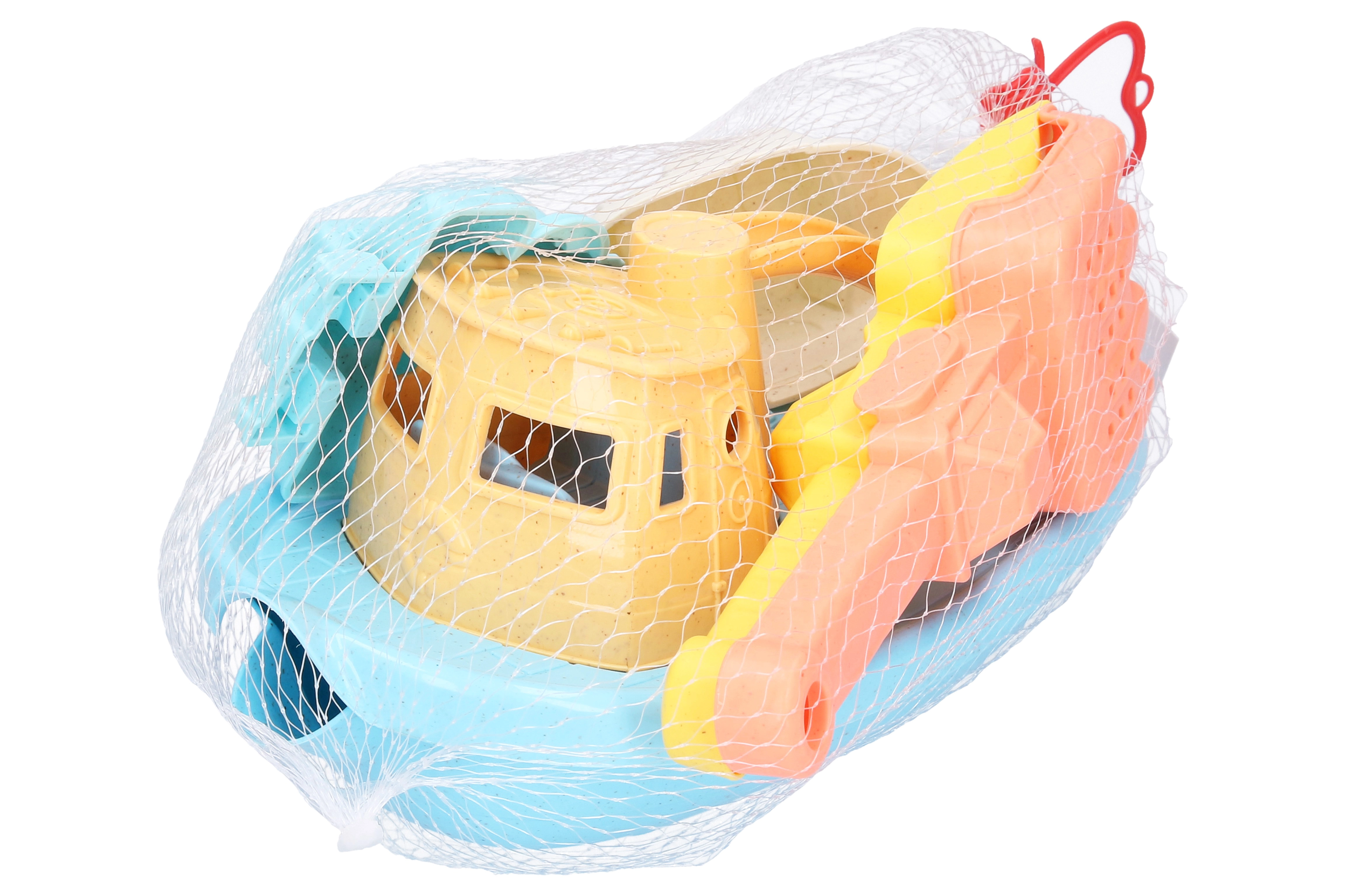 Set ideal de nisip pentru micii constructori, care conține o barcă de 22 cm lungime și alte accesorii necesare pentru joacă distractivă pe nisip.